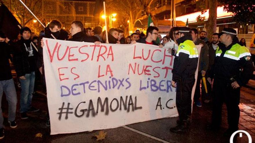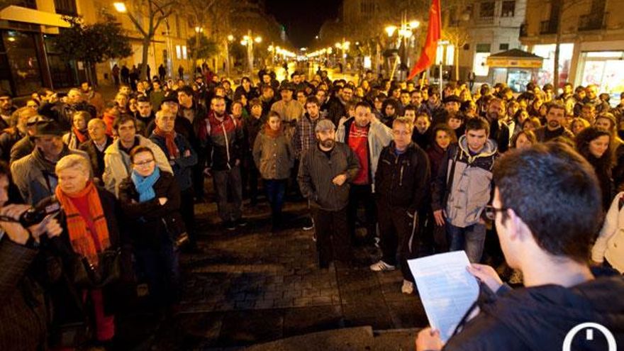 La marcha no estaba prevista ni autorizada oficialmente pero, tras leer un comunicado en el que los manifestantes mostraban su apoyo a las reivindicaciones de los vecinos de Burgos, han emprendido el camino. La presencia policial ha sido muy discreta. Solo tres coches de la Policía Local y menos de una decena de agentes han escoltado la protesta. La mayoría de los integrantes eran muy jóvenes. Al principio se ha encendido una bengala y esa ha sido toda la nota de color que ha tenido la manifestación, siempre acompañada de cánticos y eslóganes en favor de la lucha de la clase obrera, por la movilización social y en contra de la banca y otros poderes.