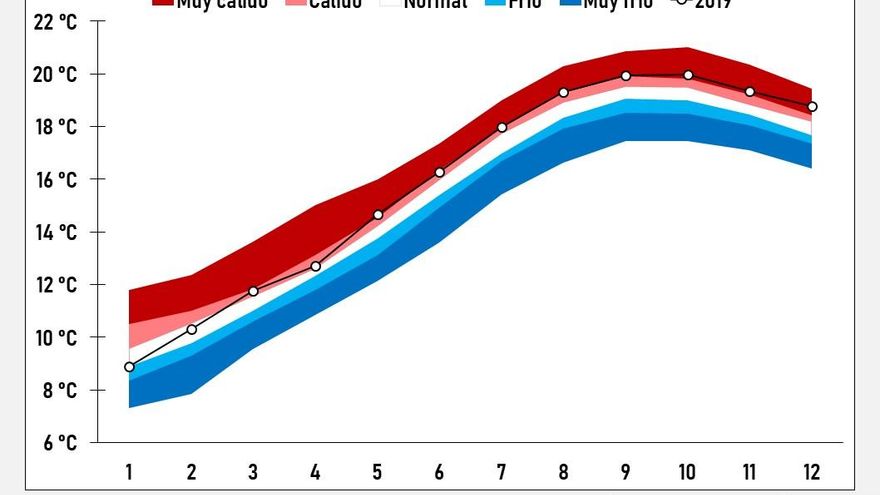 Por meses, hubo 13 anomalías negativas (9 en la primera mitad de año) y 23 anomalías positivas (14 de ellas en la segunda mitad de año), entre las tres temperaturas medias.