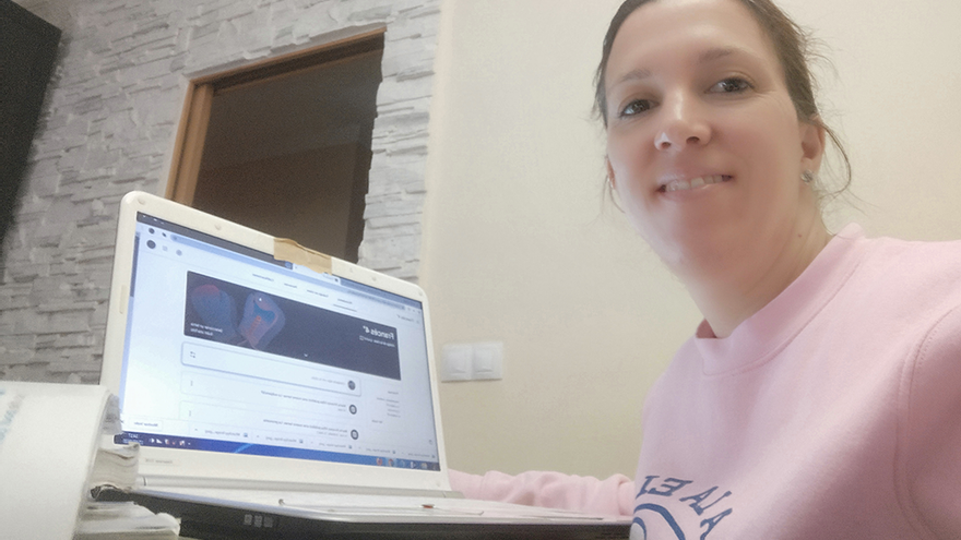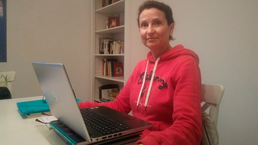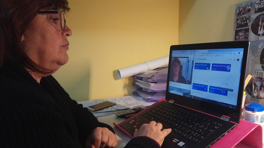 Delante del ordenador estos días también está Constantina, profesora de Lengua castellana y Francés en Secundaria en el Colegio Ferroviario de la capital. Mantiene un horario adaptado a la situación con tiempo para las clases -explicaciones y dudas- que se pueden resolver por videonferencia o chat, además de las horas extra para planificar las clases y corregir las actividades.