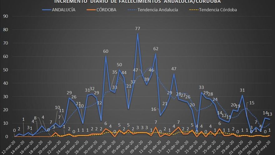 20 de abril: Córdoba sufre una cuarta parte de los nuevos decesos de Covid-19 de Andalucía
