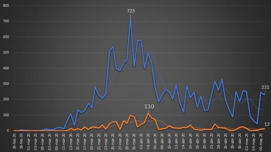 Sí es más alentador este jueves el doble parámetro que marca la situación de presión sobre el sistema sanitario. Éste es el de hospitalizados y los que están en Unidad de Cuidados Intensivos (UCI). Acerca del primer aspecto, Córdoba no vive variaciones en cuanto a cifras presentes -es decir, de pacientes que aún lo son de centros sanitarios-. Aunque tal hecho no es positivo tampoco es negativo pues al menos existe estabilidad en este sentido. Son 37 los ingresados hoy por hoy, de los cuales son 11 los que están todavía en UCI. En este plano sí que se produce una rebaja respecto del miércoles, cuando había 13 enfermos contabilizados. Por otro lado, en añadido a estos números y el de curados, la provincia reduce de manera notoria sus casos activos. Esto viene a significar, por si no se recuerda, que bajan claramente los afectados que continúan sin superar el Covid-19. Ahora mismo estos contagios netos son 378, lo que supone un mínimo desde el 27 de marzo -entonces eran 351-.