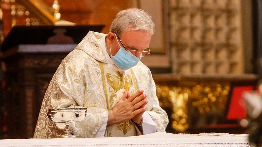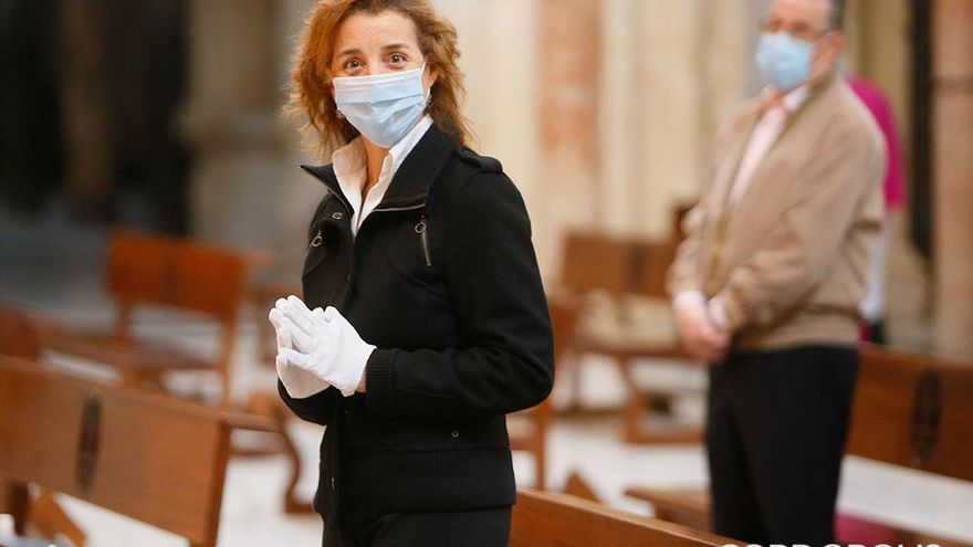 La pandemia no ha eliminado la comunión durante la liturgia, que se suministra a los fieles después de una limpieza de manos de todos los intervinientes ya que se entrega en la mano -aunque sin guantes- y no en la boca. No obstante, quien, a pesar de esta recomendación, desee recibirla en la boca, la Diócesis de Córdoba ha establecido que debe esperar al último lugar, después del resto de los fieles. Antes de dar la comunión a los fieles, además, el deán porta una mascarilla. El contacto físico también se ha reducido en el saludo de la paz, sustituido por una pequeña reverencia.