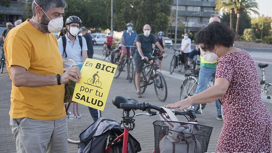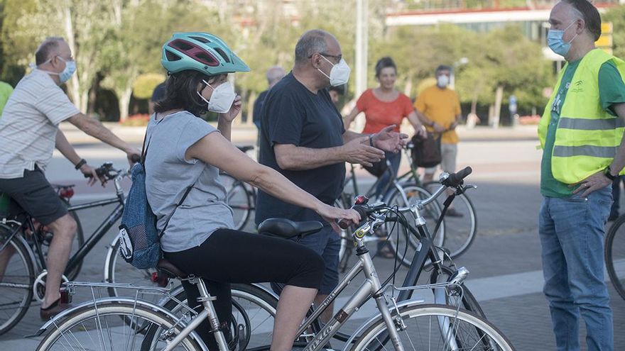 Los promotores de esta acción, que se ha repetido en otras ciudades del país, han propuesto hacer visibles las cadenas de bicis, en grupos de 10 o 15 personas -el límite de reunión en la fase 2 de la desescalada-, recorriendo los principales viales del carril bici, además de reivindicar el establecimiento de las ciclocalles -carriles de la calzada con límite de velocidad y prioridad para bicicletas y patinetes-, anunciadas por el Ayuntamiento.