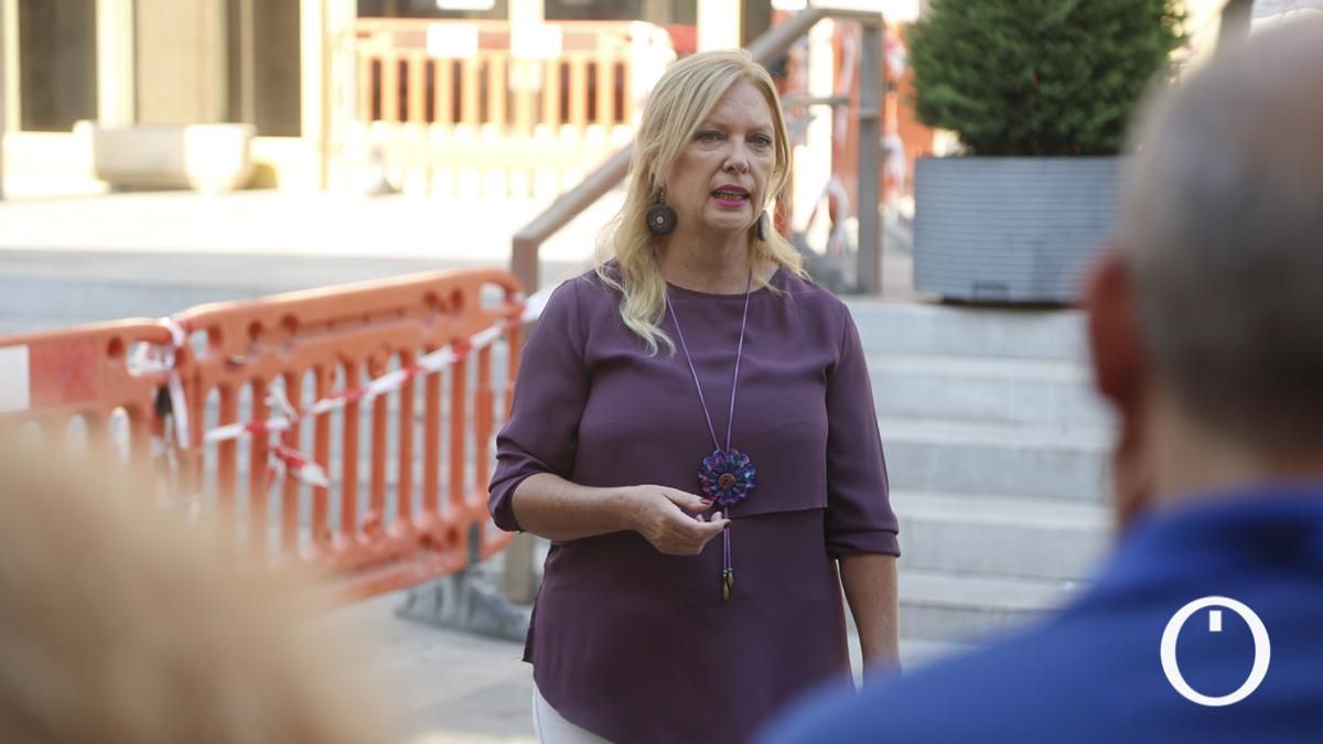 Integrantes de Podemos y de colectivos ciudadanos como Ecologistas en Acción y la Plataforma A Desalambrar han protestado este jueves ante el Ayuntamiento de Córdoba por la licencia concedida al proyecto de construcción de un nuevo campo de golf en la capital, en el entorno de Medina Azahara.