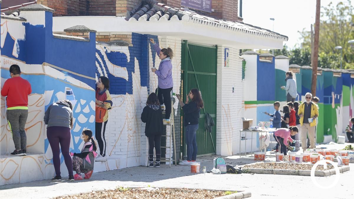 Vecinos de la Fuensanta pintan un mural en la piscina