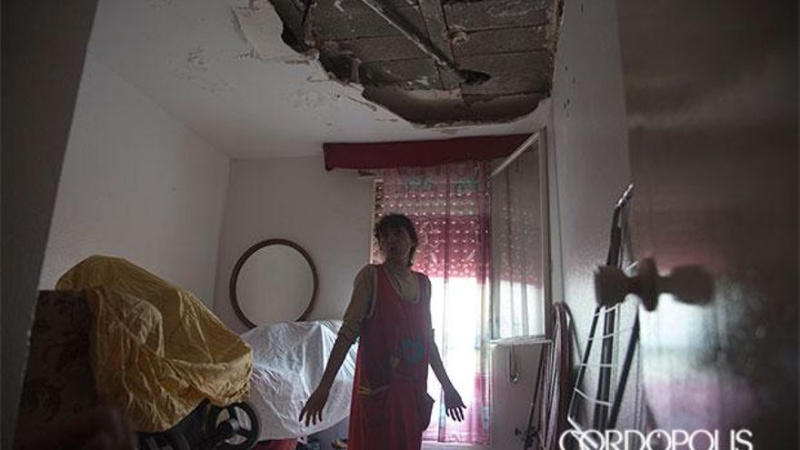 Termina el paseo por Las Palmeras. Las humedades y los desprendimientos de partes del techo son visibles también en la calle. Pero de dimensiones mucho mayores, como pueden encontrarse en algunos de los soportales que comunican un patio a otro del barrio. Algunos vecinos se mueven con la normalidad cansada que otorga la costumbre de convivir día a día en esas condiciones. Pero otros muchos, como El Chache o Eugenio Rosa, se rebelan. Y exigen mejoras inmediatas. A quien sea.
