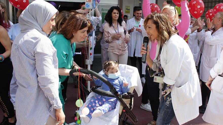 La directora gerente, Valle García, ha participado en el lanzamiento de globos y ha querido poner en valor, con este gesto, “los esfuerzos de humanización que día a día se realizan en el área Pediátrica del personal del hospital y de todos aquellos agentes que trabajan para hacer más agradable la estancia de los niños y niñas en el centro: profesores y voluntarios, así como las organizaciones que velan y contribuyen al bienestar del niño durante su ingreso”.