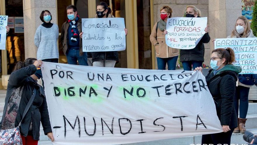 Los padres del colegio San Fernando protestan por el frío que pasan sus hijos en el centro