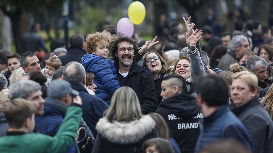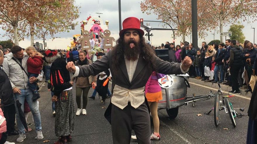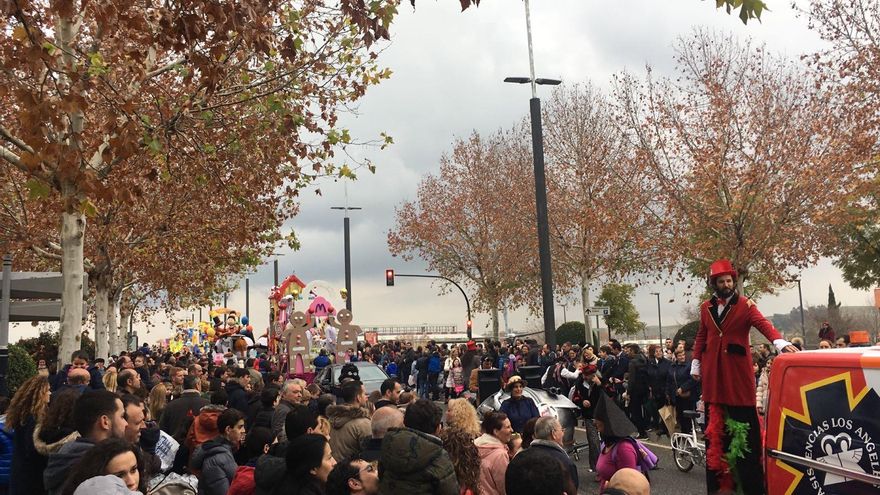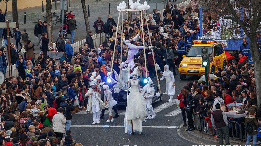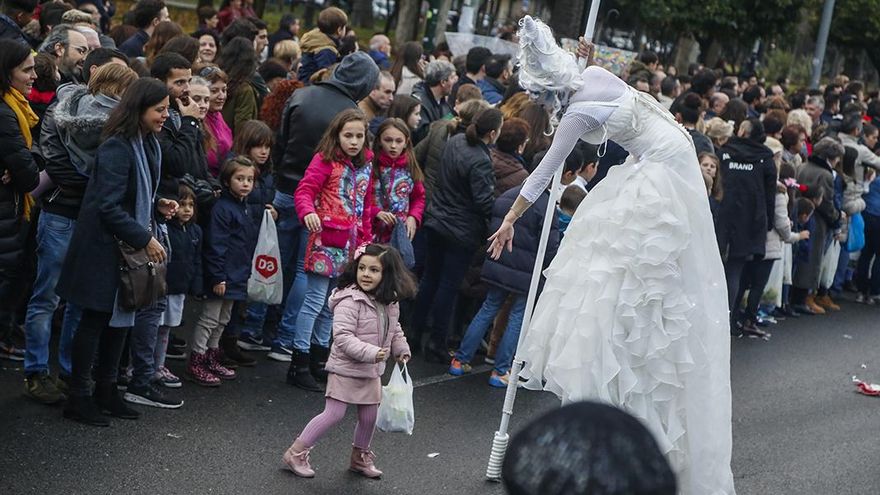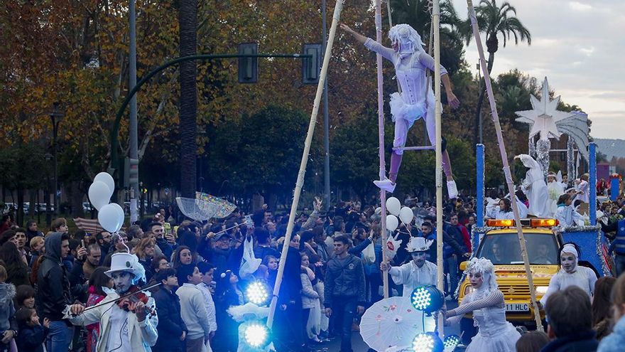 En cuanto las nubes bajas se abrieron y un asomo de azul cielo -escaso, breve, pero esperanzador- se dejó ver, la Cabalgata de Reyes comenzó. Pepe Ciclo y sus secuaces formaban parte de las tropas de vanguardia. Mitad una banda de rock de los setenta enloquecida tras pasar una temporada encerrada en un camerino, mitad un conjunto de maestros de ceremonias circenses en pintoresco tratamiento, no dejaron de bailar a lo largo de los cinco kilómetros y pico de recorrido.