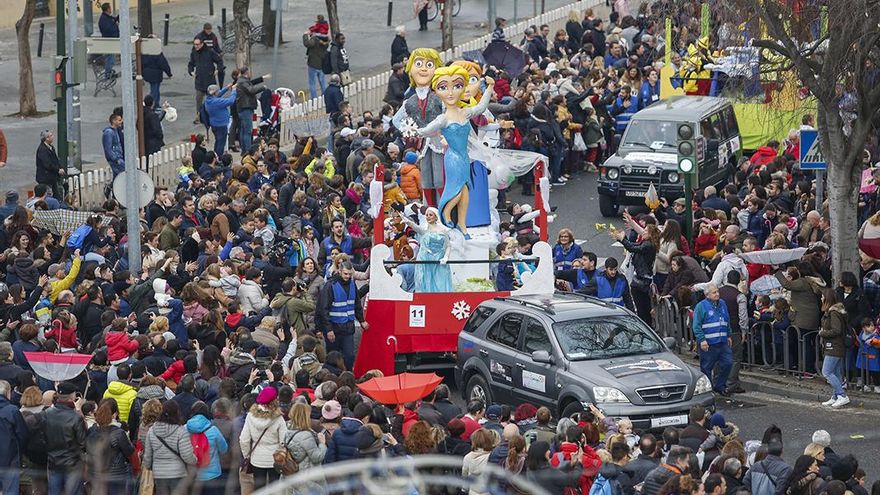 Detrás de ellos, 28 carrozas para todos los gustos. Desde las de carácter religioso a las más prosaicas con personajes de películas infantiles, como los minnions (unas adorables píldoras amarillas con ojos y algo psicorrígidas) o la princesa de Frozen (mantequilla helada).