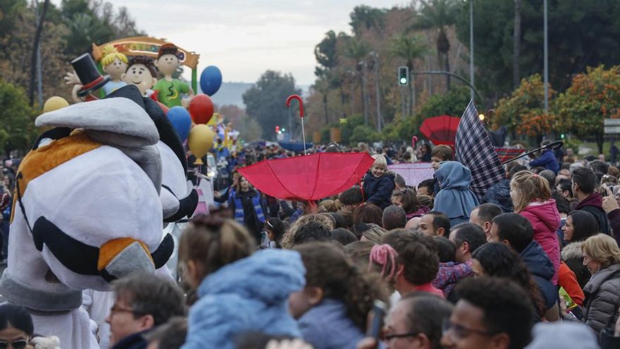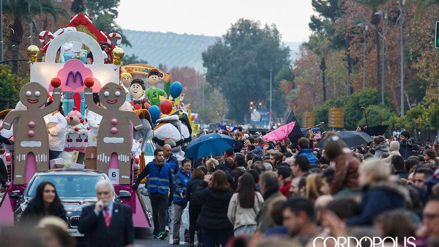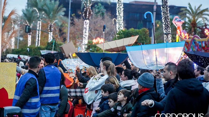 Al final no hizo falta Plan B para la Cabalgata de Reyes de Córdoba, sino Plan P. Este salto en el alfabeto se debió a una serie de carambolas meteorológicas que terminaron retrasando a las últimas horas del día un frente de chubascos que se avecinaba este viernes. Una demora que supuso el tiempo justo para frenar el aguacero que muchos temían y otros aseguraban. Un respiro que dio un respiro a los organizadores y la luz verde para que la comitiva avanzase. ¿Y por qué Plan P? Sencillo, por los (P)araguas que todo el mundo llevó y que se terminaron usando, sobre todo, para recoger caramelos del cielo.