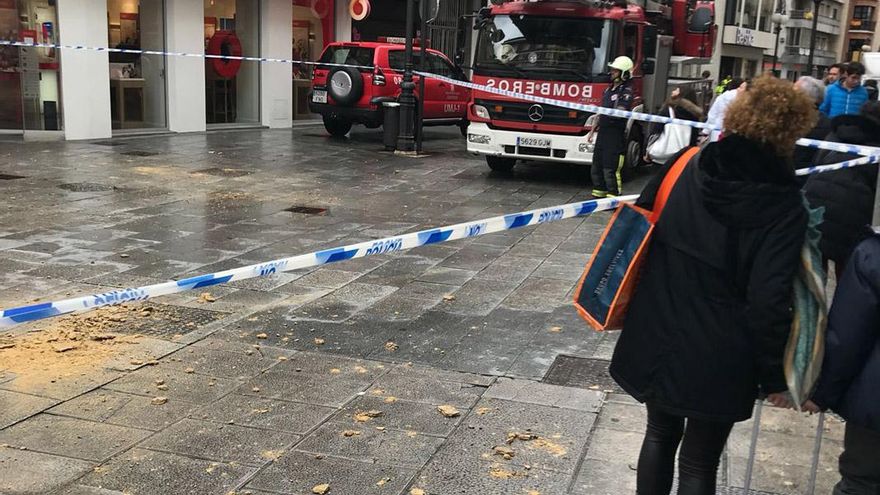 La incidencia más grave ha tenido lugar en la zona de San Nicolás. Parte del revestimiento de la torre de la iglesia se ha desprendido y ha estado a punto de caer sobre varias personas que caminaban por el lugar. La Policía Local ha acordonado la zona e impide el tránsito hasta que no se asegure el lugar.