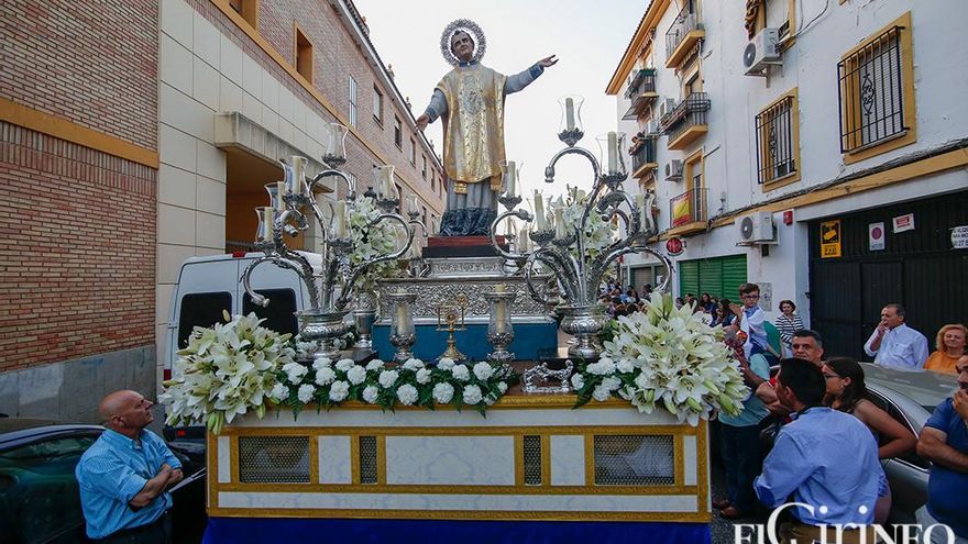 La procesión iba formada, como es tradicional, por otras dos imágenes además de la de la Virgen: Santo Domingo Savio, que era llevado en parihuelas, y San Juan Bosco, en un paso a costaleros con claveles blancos en el friso y lilium del mismo color en jarras y esquinas. Cambiaba la banda que acompañaba al fundador de Salesianos y esta vez iba tras él la Agrupación Musical Santísimo Cristo de la Humillación de Lucena.