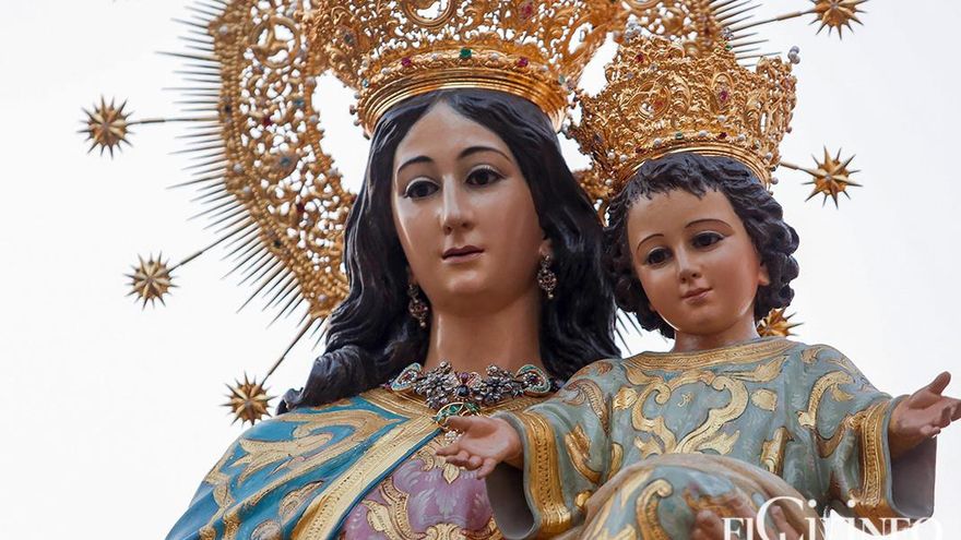 La Virgen, que llevaba en el frontal una reliquia de San Juan Bosco -al igual que el paso de este santo-, volvía tras pasar por San Lorenzo al santuario que la acoge por la calle que lleva su nombre para ocupar el lugar de todo el año en su camarín. Lo había abandonado el miércoles al término de la novena para bajar hasta el suelo en un emotivo acto en el que la talla descendió por una rampa mientras se alternaban las sentidas palabras del director del colegio de Salesianos, José Antonio Perdigones, y los cantos del coro del mismo centro educativo. En el presbiterio la esperaban alumnos de Infantil y de Primaria vestidos de ángeles y al llegar hasta ahí comenzó el besapiés.