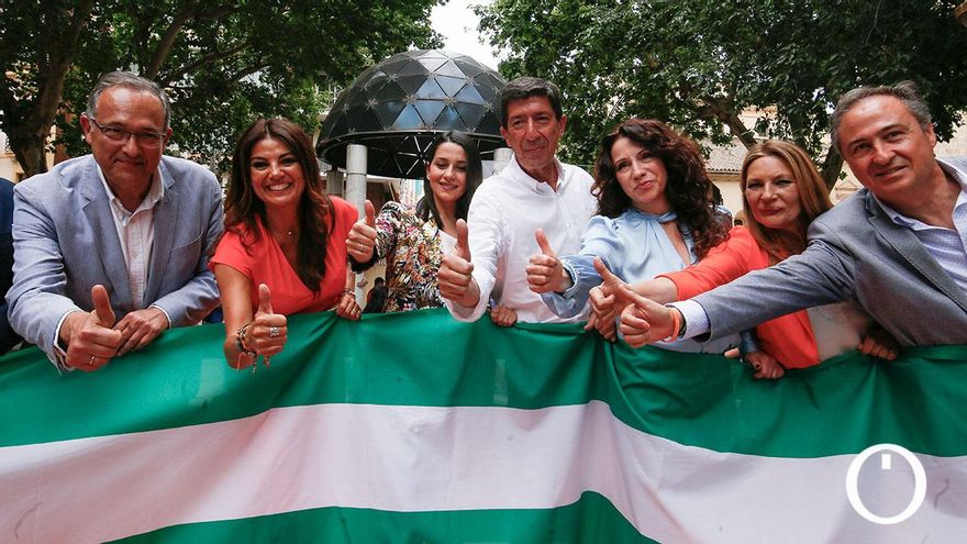 El acto de este sábado en Córdoba -en el que no se ha mencionado en ningún momento el cisma producido en la provincia tras la dimisión en bloque de la Junta Directiva Local- ha servido para presentar a los candidatos y la estrategia #AndalucíaLiberal con la que el partido que dirige Inés Arrimadas aspira a frenar la huída de apoyos. En un gesto prácticamente inédito -en los mítines de Cs siempre ha ondeado hasta ahora la bandera de España, incluso en Andalucía-, todos los candidatos se han envuelto en la señera blanca y verde.