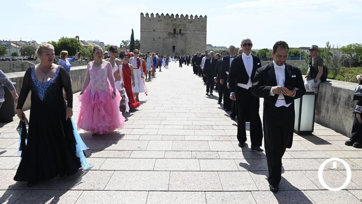 El Puente Romano se ha convertido en una enorme pasarela de baile, dentro de los actos del 32 Campeonato de Baile Retro de España y Europa, que ha congregado a centenares de personas este sábado en la zona.