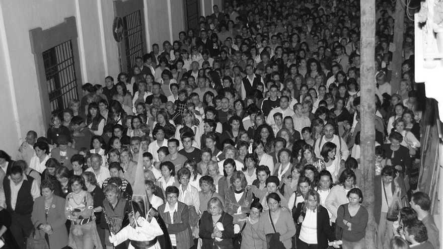 Lamentablemente, la hermandad del Rescatado no cuenta en su archivo con el dato tan significativo como es el del año en que su titular pasó al segundo lugar en el cortejo, cerrado tras él por los miles de penitentes que de paisanos lo acompañaban hace varias décadas y cuyo número ha descendido en los últimos años. Preguntada por el CIRINEO sobre este dato, responde la hermandad que “no hay constancia documental”. Sin embargo, veteranos cofrades con los que ha hablado este periódico sitúan este cambio en el orden de los pasos a finales de los años sesenta o los primeros años de los setenta. Pero el cronista oficial de la Ciudad de Córdoba, Julián Hurtado de Molina, afina un poco más y asegura que, por la información con la que cuenta, en 1970 Jesús Rescatado ya ocupaba el segundo lugar en el cortejo.