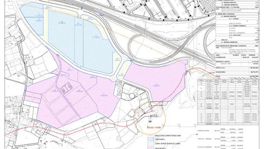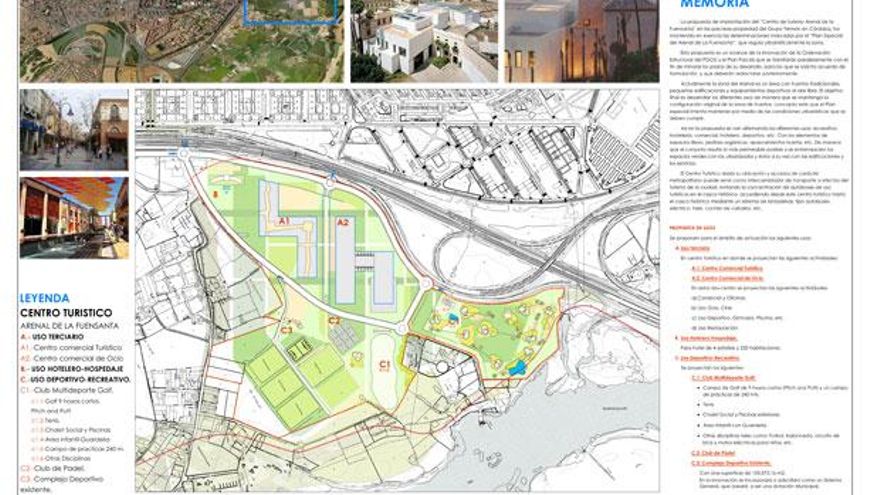En concreto, y según el informe que verá el viernes el consejo rector de la Gerencia Municipal de Urbanismo, el proyecto incluye “la implantación de usos terciarios y dotacionales deportivos (club multideporte constituido por instalaciones ligadas a la práctica del Golf, en la modalidad de pitch and putt y por un club de padel). En cuanto a los usos terciarios, se propone la ejecución de una gran superficie comercial constituida por un centro comercial turístico y por un centro Comercial de ocio, completándose la actuación con la construcción de un complejo terciario-hotelero y de oficinas”.