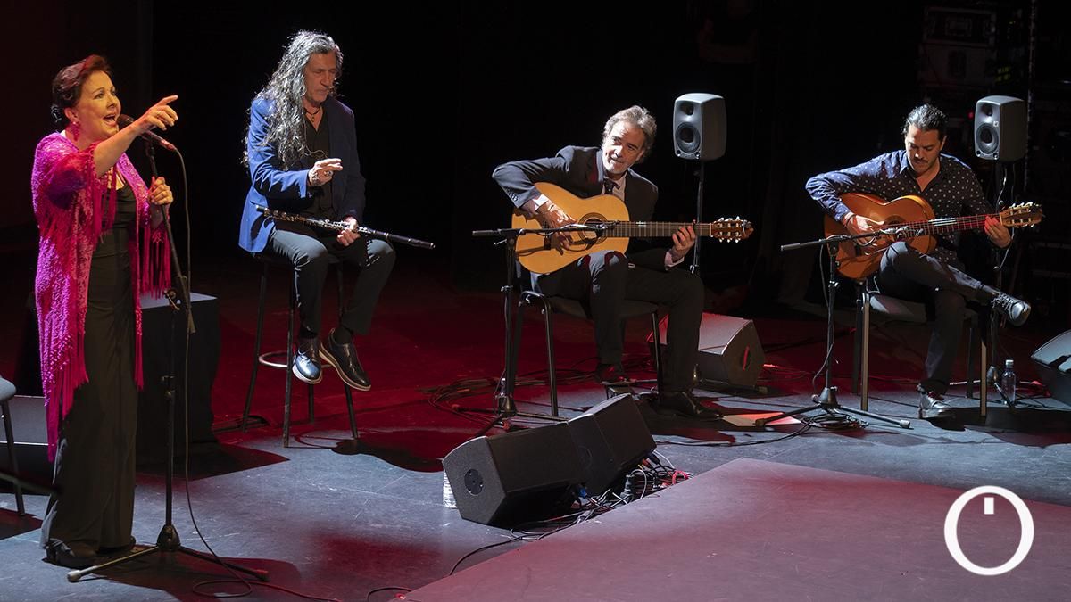 La cantaora Carmen Linares, acompañada de su cante con el trío de flamenco-jazz formado por Jorge Pardo, Carles Benavent y Tino di Geraldo, ha traído hasta el Gran Teatro de Córdoba el espectáculo Cu4tro, un homenaje a los cuatro grandes del flamenco: Camarón, Enrique Morente, Paco de Lucía y Manolo Sanlúcar.
