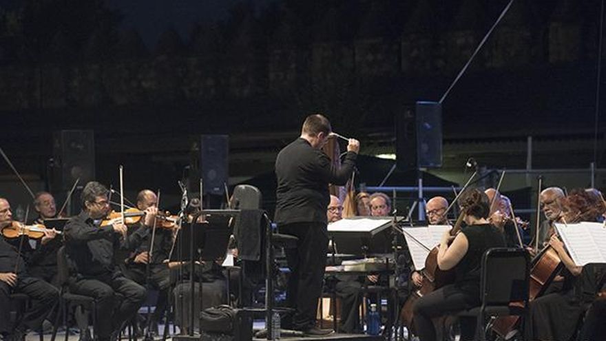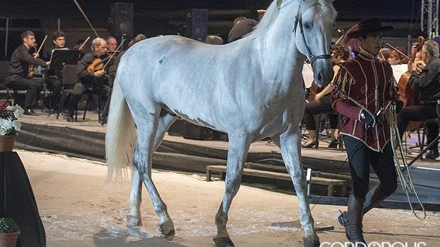 Las luces, los instrumentos afinándose y el relincho de los pura raza creaban un ambiente singular, que más que mero preparativo, parecía ser todo un ritual. Con esta esfera, el público se iba acomodando en sus asientos, inquieto por formar parte de un hecho histórico, único en nuestro país por tu tamaño y ejecución. La música y el caballo andaluz es el título de un espectáculo en el que la Orquesta Sinfónica de Córdoba ha hecho bailar a los 36 caballos de Caballerizas. Y bailaron. Bailaron junto a los acordes de violines, violoncellos, clarinetes o trombones, pero también lo hicieron al son de las palmas de los más de 1.200 espectadores que acudieron al evento. La formación sinfónica, dirigida por Lorenzo Ramos, puso en vivo la banda sonora de un montaje en el que el protagonismo estaba repartido de forma equitativa.
