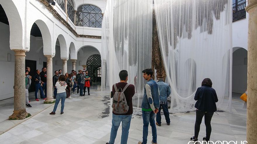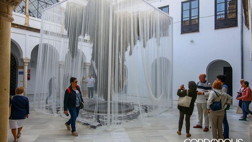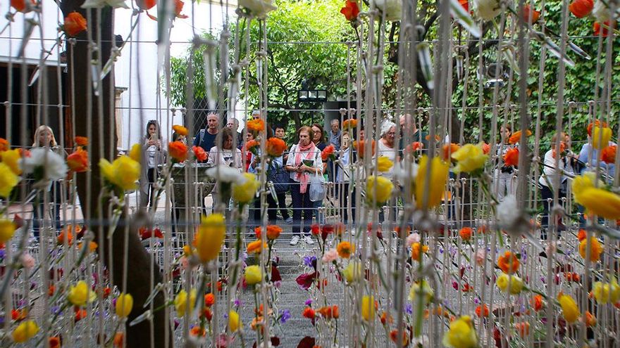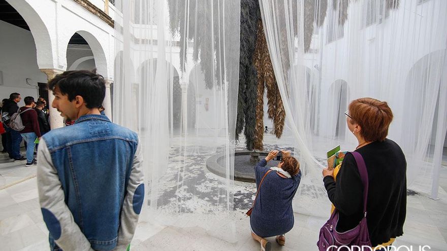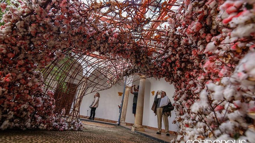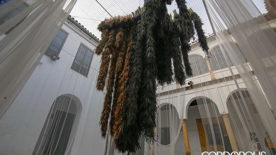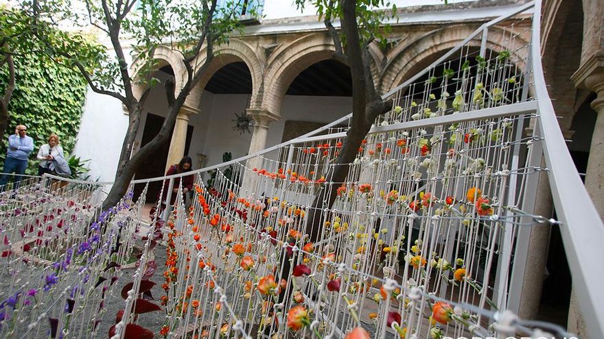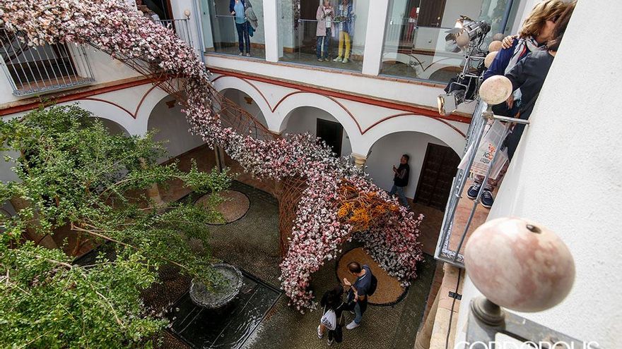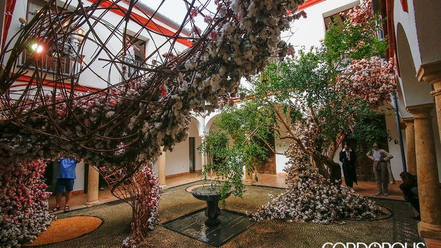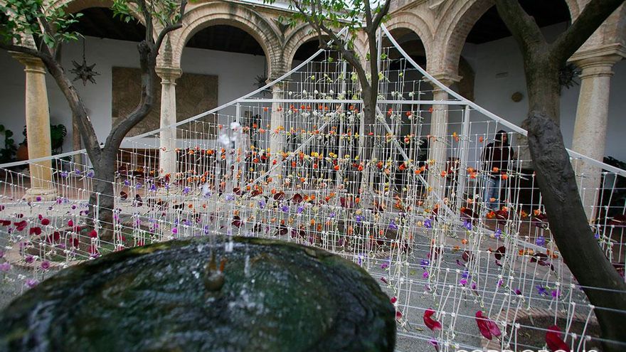 En este itinerario para redescubrir los patios de Córdoba, en esta edición se estrenan los patios de la Casa Góngora. Trepidante es el título del trabajo realizado por Flor Motion, un colectivo formado por quince de los mejores floristas de Madrid. En esta instalación, las flores y las plantas secas vuelven a ser protagonistas, con su pronunciado aroma como carta de presentación. Suelos cubiertos de flores que, al ser pisadas por los visitantes, desprenden aún más olor. Y, ante sus ojos, un torbellino de algodón y mimbre que juega con el granado que preside el patio principal y la doble altura de las dos plantas de la casa.