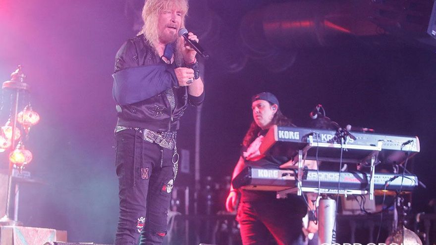 Medina Azahara se reencontró el domingo por la noche con su público pero en la nueva normalidad. En la sala M100 y con un aforo de 60 personas, el grupo cordobés dio un concierto muy especial que pudo seguirse también por streaming. Su cantante, Manuel Martínez, lucía un sorprendente cabestrillo, fruto de una lesión doméstica.