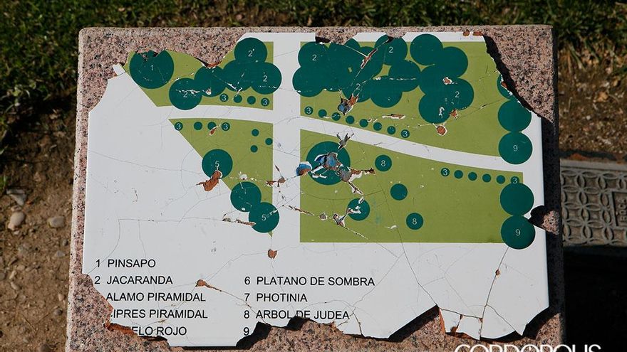 Respecto al resto de elementos y mobiliario diseñados por Juan Cuenca para el parque, muchos han sido destruidos o por el vandalismo o “por la desidia de la administración”. Un estanque sin agua que en su día albergó un jardín acuático; un arroyuelo seco; carteles de cerámica que explican las especies vegetales dañados o desaparecidos y unas especies que ya no son tan variadas como lo fueron, retratan el parque dos décadas después.