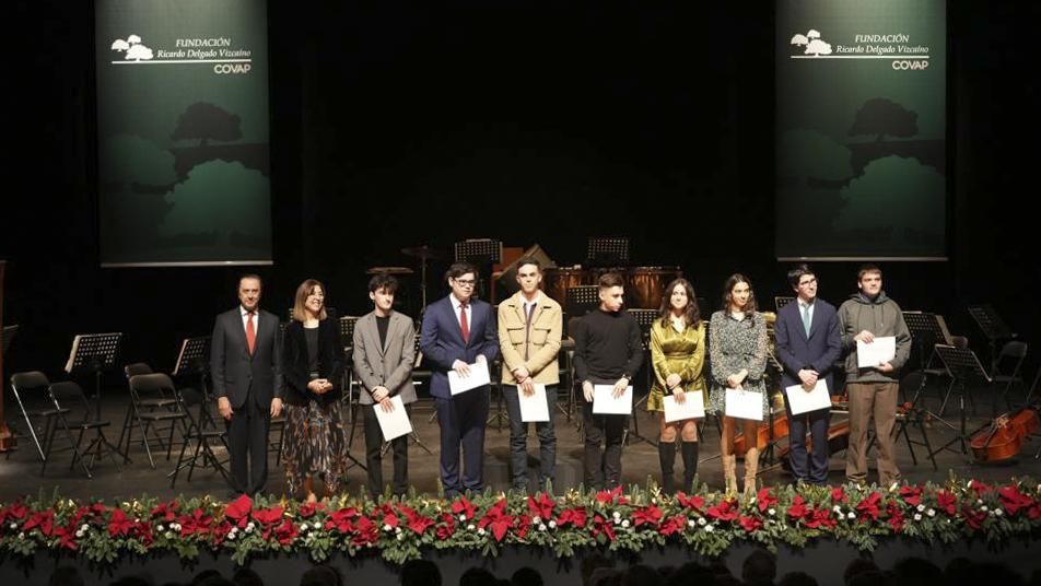 La Fundación Ricardo Delgado Vizcaíno ha entregado esta noche, en el marco del Concierto de Navidad, los Premios de Bachillerato 2021-2022, que reconocen el esfuerzo de nueve estudiantes de institutos asentados en las comarcas de Los Pedroches y el Alto Guadiato (Andalucía); La Siberia y La Serena (Extremadura) y el Valle de Alcudia y la comarca de Almadén (Ciudad Real). Nueve alumnos, tres por Comunidad Autónoma y con calificaciones sobresalientes, han recogido sus galardones durante esta gala navideña de carácter benéfico.