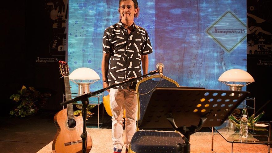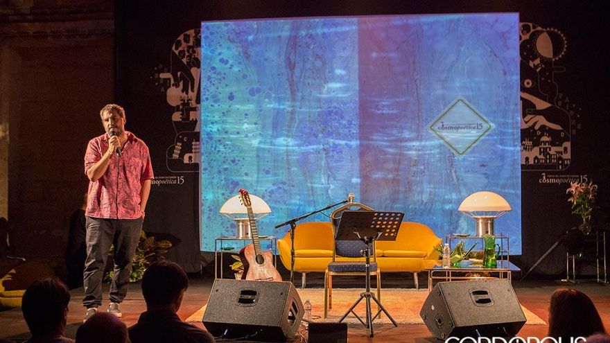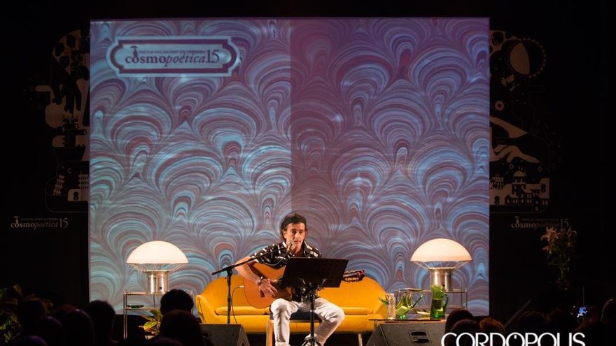 “Vengo en calidad de no sé qué. Los poetas son algo más serio. Yo me dedico a escribir y punto, y el nombre me lo ponen ustedes”. El festival internacional de poesía Cosmopoética está decidido en esta edición a ser algo más que eso. Juan Carlos Aragón, uno de los grandes letristas del Carnaval de Cádiz, aterrizó este viernes en la sala capitular de Orive justo después de un recital vibrante y en pie de Juan Cobos Wilkins. Prácticamente el mismo público de uno y otro se mantuvo fijo, llenando y rebosando otra noche más este espacio. Formando una cola que, de nuevo, se asomaba a la calle San Pablo. Un público que venía a escuchar poesía y carnaval.