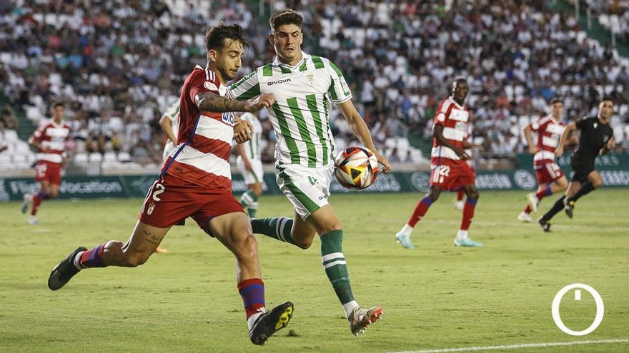 Esta tónica se consolidó con el paso de los minutos hasta tal punto de que el filial nazarí era incapaz de pasar la línea de mediocampo, por lo que dejaba al Córdoba CF con mucha soltura en los metros finales. De hecho, la inclusión de los laterales a la zona ofensiva era una dinámica muy concurrida en estos primeros compases del duelo y así precisamente llegó el primer tanto del choque. Carlos Albarrán subió líneas y llegó al borde del área para ejecutar un disparo que sorprendió a Pol Tristán, adelantando así al conjunto califal en esta calurosa tarde en El Arcángel.