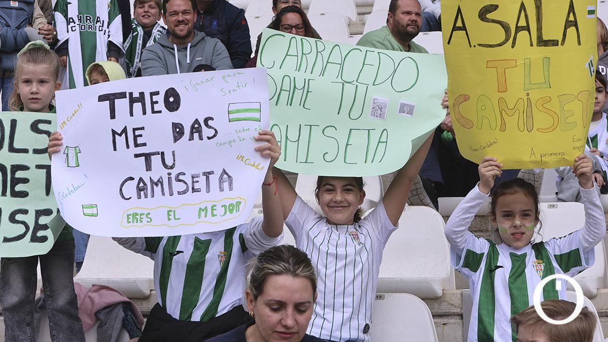 Un gesto por parte del club blanquiverde que hace que los más pequeños puedan disfrutar del día a día de sus ídolos. El Córdoba CF ha repetido una medida que ya realizó durante las pasadas vacaciones navideñas y ha abierto las puertas de El Arcángel este Viernes Santo. Cerca de 1.000 aficionados cordobesistas han ocupado en un sitio en la grada del coliseo ribereño para ver el entrenamiento de los chicos dirigidos por Iván Ania. Autógrafos, fotografías, aplausos y muchos gritos para llamar la atención de determinados futbolistas. El cordobesismo sigue aunando fuerzas.