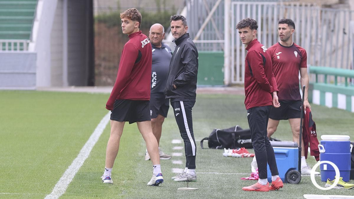 Los jugadores del Córdoba calentando antes del entrenamiento