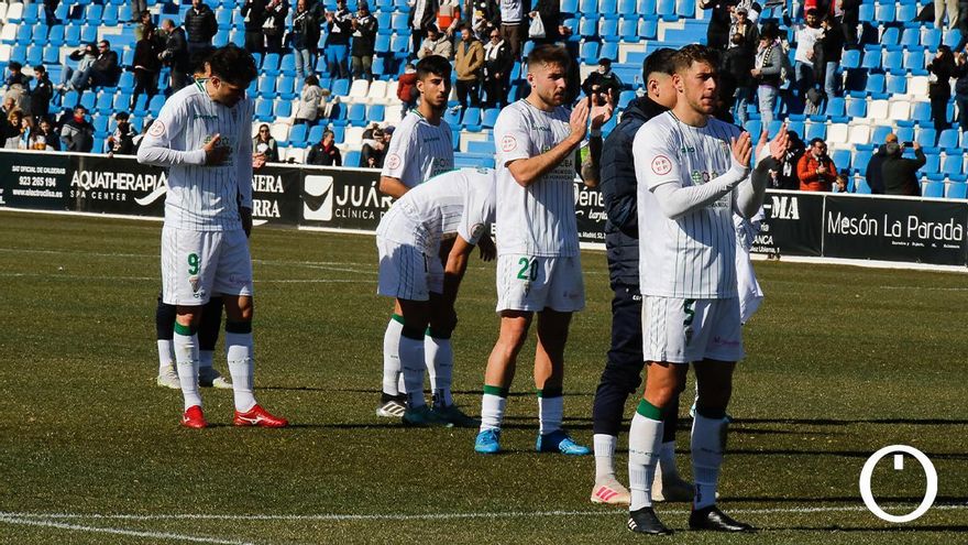 Un punto que, una vez más, sabe a muy poco. El Córdoba CF mejoró en sensaciones en su visita al Unionistas, aunque de nuevo se quedó sin gol y se deja por el camino otros tres puntos que le dificultan un poco más la pelea por el liderato. Los blanquiverdes estuvieron, de nuevo, acompañados por decenas de aficionados en el recinto salmantino, quienes animaron sin cesar en busca de ayudar a que los suyos salieran del bache negativo. Pero no será así tampoco esta semana.