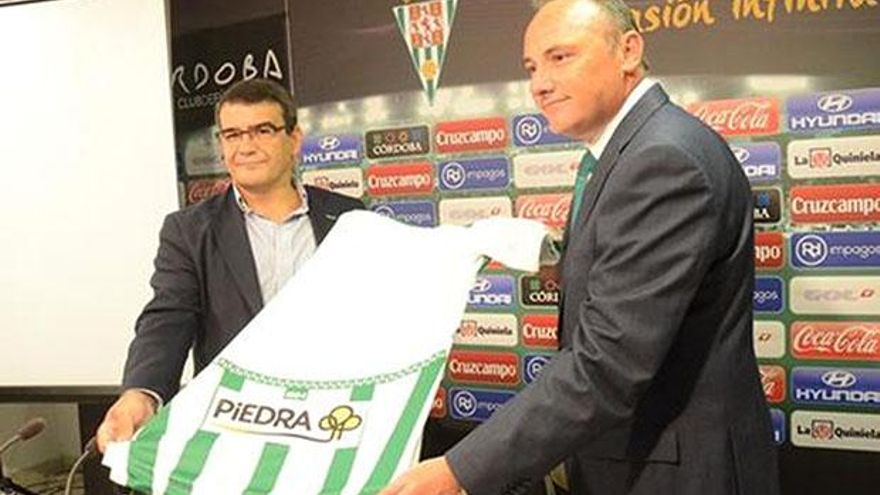 Todas esas cuestiones las comunicó Jiménez en la primera de las dos conferencias de prensa que realizó este viernes el club, ambas para presentar novedades en el marco institucional y también en el social. En la primera se anunció que Supermercados Piedra se vuelve a sumar al proyecto califal, como ya hiciera en la campaña 2011-12. Dicha sociedad volverá a contar con su logotipo en la trasera de la camiseta del primer equipo, al igual que en aquella temporada, así como en soportes estáticos en el estadio. Con todo, el acuerdo va más allá, puesto que la empresa cordobesa “entra de una manera importante en el club de socios”, según apuntó el vicepresidente de la entidad blanquiverde. “A los abonados se les harán descuentos del tres por ciento en sus productos y también se realizarán una serie de acciones comerciales de cara, sobre todo, a Navidad, de forma que en su red de establecimientos habrá productos del Córdoba”, explicó el mandatario. Estarán exentas de esa oferta las bebidas alcohólicas y actividades promocionales que lleve a cabo Piedra.