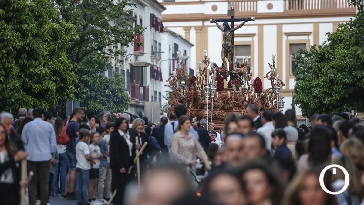 El Cristo de la Providencia ha vuelto este Viernes de Dolores a la Catedral de Córdoba celebrando el vía crucis por las calles aledañas a La Trinidad. La imagen de Luis Álvarez Duarte estrenó la talla del canasto finalizada este mismo año.