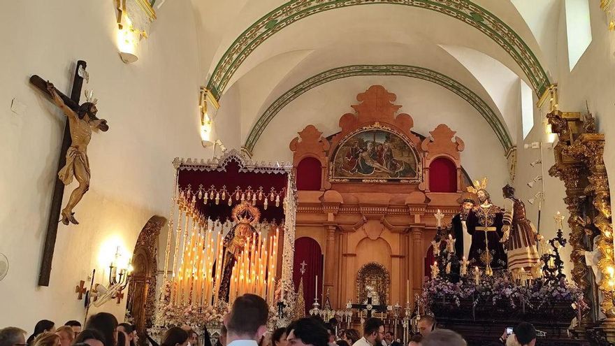 Las imágenes de Jesús del Perdón y María Santísima del Rocío y Lágrimas están a punto de salir ya. La hermandad que ha iniciado este Miércoles Santo ya tiene la cruz de guía en la calle y completará el cortejo con ambos pasos.
