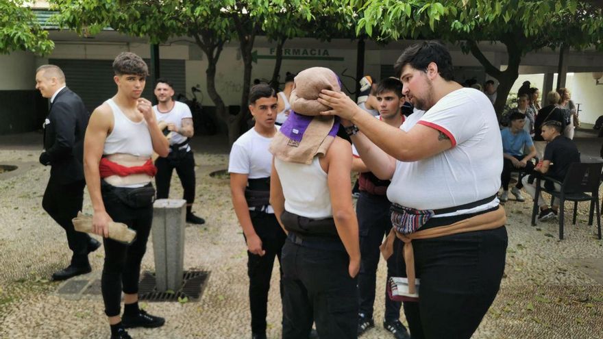 Mientras, en el barrio del Parque Figueroa se ultiman los preparativos también para la procesión de la hermandad de Lágrimas. Los costaleros se preparan y el público ya está pendiente de la estación de penitencia de esta hermandad.