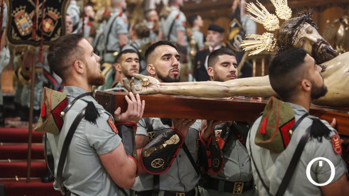 La hermandad de la Caridad celebró este Viernes Santo el tradicional Vía Crucis con su titular portado por el Tercio Gran Capitán de la Legión. El acto se desarrolló en el interior de la parroquia de San Francisco debido a las inclemencias meteorológicas.