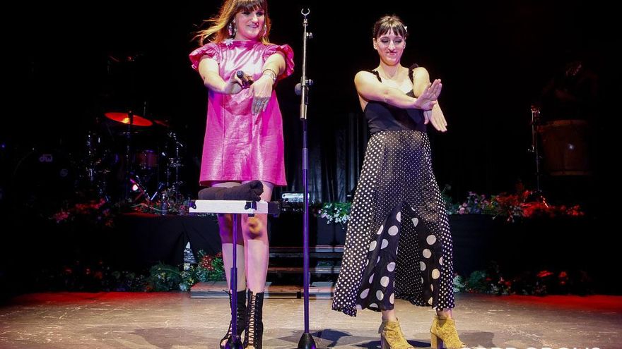Nada teme la albaceteña, que en su último disco (Cuando el río suena) antes de su trabajo recopilatorio Cerrando puntos suspensivos, abrió tanto el pecho que colocó el corazón propio y el de sus padres en una mano. En La Axerquía también sonó Amor prohibido, así como otras letras: Las hadas existen, Vuelves o Comiéndote a besos, por ejemplo. Sucedió todo entre las 22:36 -el concierto comenzó con un ligero atraso por un percance leve de uno de los músicos- y las 00:38, cuando el teatro estaba ya patas arriba. Aunque resulta necesario indicar que el público cordobés, entregado de principio a fin esta vez, suele ser excesivamente mesurado en sus peticiones de bis. El mismo lo cerró Rozalén junto a los suyos, con Respect después de regalar Girasoles. Todo tuvo lugar con Beatriz Romero a su lado, con su inseparable intérprete de lengua de signos. Porque la suya es voz también inclusiva, en este caso para sordos. Las dos llenaron un escenario que no requirió de decoraciones ni efectos visuales magnánimos. Lo importante era la música, y su significado.