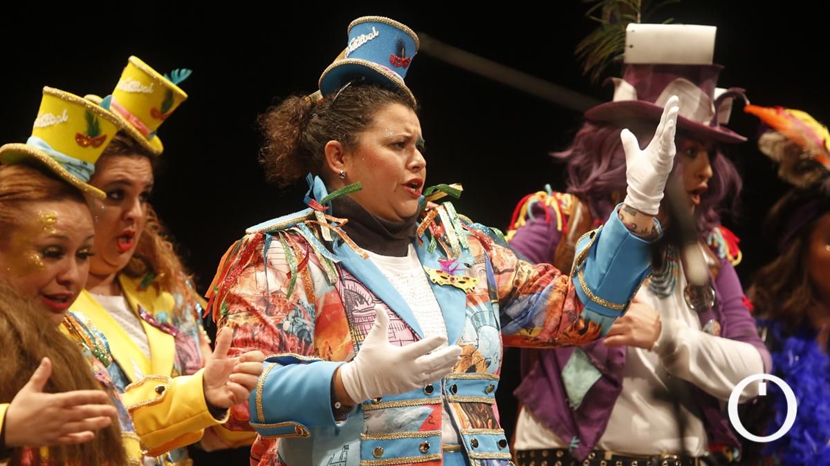 Llegó acto seguido el turno de la pregonera, la también comunicadora Mari Ángeles Mellado, con una trayectoria muy ligada a la celebración de Don Carnal. La encargada de anunciar el Carnaval apareció sobre las tablas con un traje con una especie de frac que mostraba diferentes carteles de la fiesta en Córdoba. Y como si estuviera ante un espejo en un camerino. Su pronunciamiento fue de lo personal a lo carnavalero, y al revés, y contó con la actuación de algún que otro grupo.