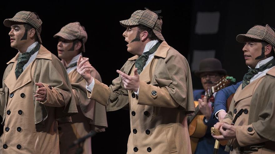 El ojo avizor de la noche vino de la mano de las agrupaciones 'Los vigilantes' y 'Bigilansiah 24'. Las gaviotas que todo lo ven y todo vigilan cesaron el vuelo para recriminarle a Canal Sur que su programa, Yo soy del sur, no es el fiel reflejo de lo que es Andalucía. “El patrimonio de todo andaluz no es sólo del sur, el que canta sevillanas”. Sin bombo, caja, platillos ni guitarra. La voz, desnuda. Así sorprendieron 'Los vigilantes' con su segundo pasodoble, uno de los momentos más especiales de una fría noche. La agrupación decidió cantar, así, una bella letra a “tantas y tantas voces sin nombre porque son las que hacen grande a este Carnaval”. A la “voz que más importa, que es la de del pueblo y la afición que huye del fanatismo”. La chirigota 'Bigilansiah 24' hizo reír al público durante todo su pase, sobre todo en cuplés y popurrí. A la lucha incansable de una ama de casa dedicó su segundo pasodoble, al que precedió una primera letra dedicada a aquellos falsos patriotas, a los hipócritas, a los de la bandera e himno que dejan de serlo al defraudar. “Una patria está en su gente y no en una bandera, ni en un himno, ni en la legión ni en un rey”.