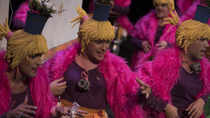 Así, la función la inició la agrupación 'Los auténticos superhéroes' cuyo primer pasodoble lo dedicó al tipo variado en el que se transformaron sus componentes, aquellos superhéroes anónimos que nos rodean día a día: una azafata de vuelo, un marine, un médico o una ama de casa. Con el segundo pasodoble hicieron mención al acoso en la escuela, letra que ya cantaron en preliminares. Tras la chirigota infantil fue el turno de 'El Reino de Cronos', una comparsa que en su primer pasodoble trató uno de los temas que más ha explorado el Carnaval: el mundo de la droga. Su segunda letra sirvió para darle un tirón de orejas a todos aquellos que fomentan la televisión basura y a quienes la ponen en marcha mientras la sociedad observa impasible cómo los jóvenes huyen al extranjero en busca de trabajo.