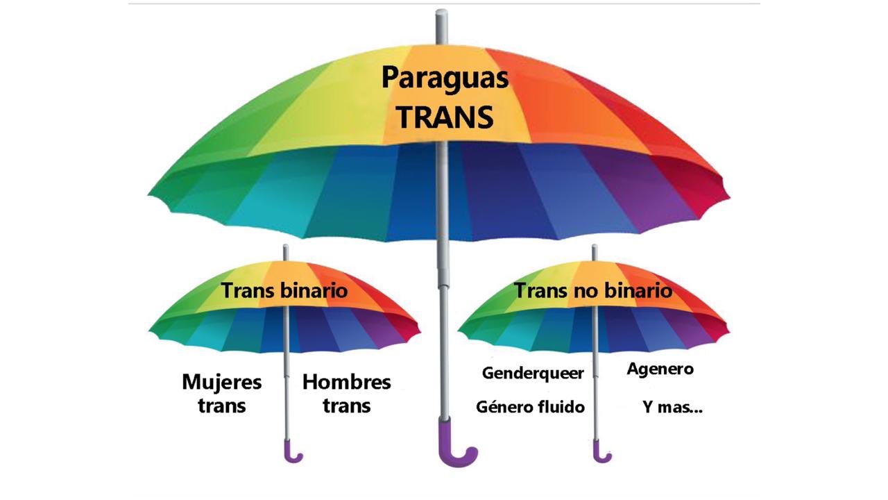 R. Es que serías automáticamente una persona trans al ser una persona no binaria. Mira esta imagen, es muy ilustrativa. Ser transgénero es un paraguas que le llamamos ya identidades trans y se divide entre los binarios, que serían hombres y mujeres trans y los no binarios, con todos los paraguas que hay ahí dentro. Está mortal porque cada vez se vuelve más difícil explicarle a alguien de qué va todo esto.Vamos a ver, al final, quieras o no, todos estos son constructos sociales. Es decir, cada uno se lo inventa como quiere. Si tú quieres inventarlo así y pensar que no puedes ser trans y no binaria a la vez, bueno, va en contra del paradigma normal dentro de la comunidad trans. Mi pregunta realmente sería ¿por qué quieres inventarte algo así? ¿tienes miedo de ser trans a pesar de que quieres ser no binaria?